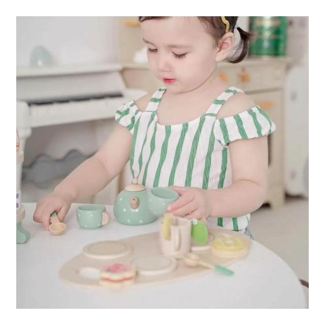 兒童下午茶套餐(木質玩具 茶壺 茶具 套裝 超高質感 下午茶 甜品 蛋糕 家家酒玩具 木製家家酒 早教仿真 兒童禮物)