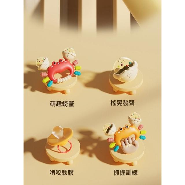 嬰兒手搖鈴(安撫玩具 固齒器 手搖鈴 沙沙鈴 安撫搖鈴 互動玩具 嬰兒玩具 可啃咬牙膠 寶寶玩具 抓握訓練玩具)
