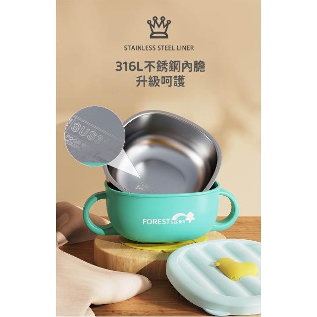316不銹鋼寶寶吃飯吸盤碗(帶蓋雙耳餐碗 防摔隔熱 嬰兒吃飯碗 不銹鋼兒童碗 兒童吃飯碗 學習碗 保溫餐碗)