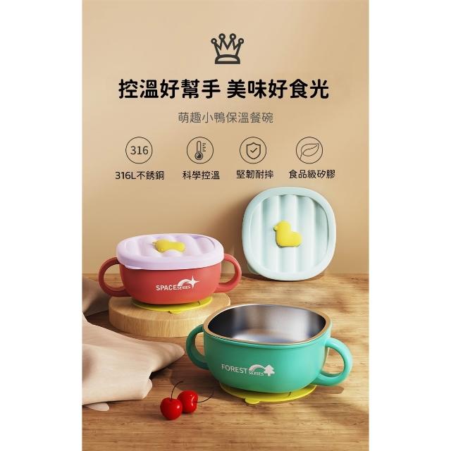 316不銹鋼寶寶吃飯吸盤碗(帶蓋雙耳餐碗 防摔隔熱 嬰兒吃飯碗 不銹鋼兒童碗 兒童吃飯碗 學習碗 保溫餐碗)