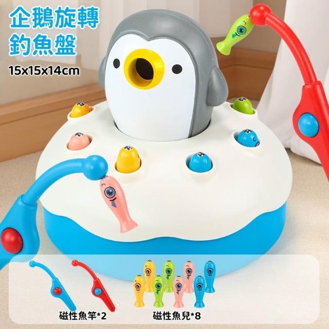 電動旋轉磁性釣魚玩具(釣魚玩具 磁吸釣魚 兒童玩具 寶寶釣魚玩具 企鵝造型玩具 早教益智 多功能音樂旋轉釣魚盤)