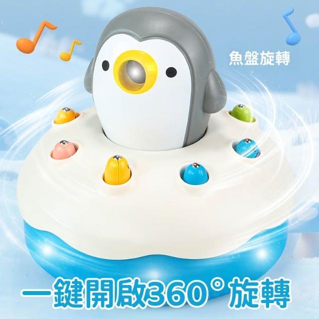 電動旋轉磁性釣魚玩具(釣魚玩具 磁吸釣魚 兒童玩具 寶寶釣魚玩具 企鵝造型玩具 早教益智 多功能音樂旋轉釣魚盤)
