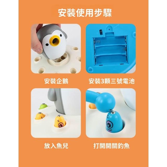 電動旋轉磁性釣魚玩具(釣魚玩具 磁吸釣魚 兒童玩具 寶寶釣魚玩具 企鵝造型玩具 早教益智 多功能音樂旋轉釣魚盤)