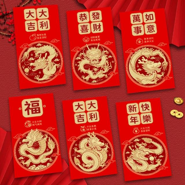 SOG購物2024龍年 創意 金蔥紅包袋 直款6入(新年 過年 紅包 紅包封 創意紅包)