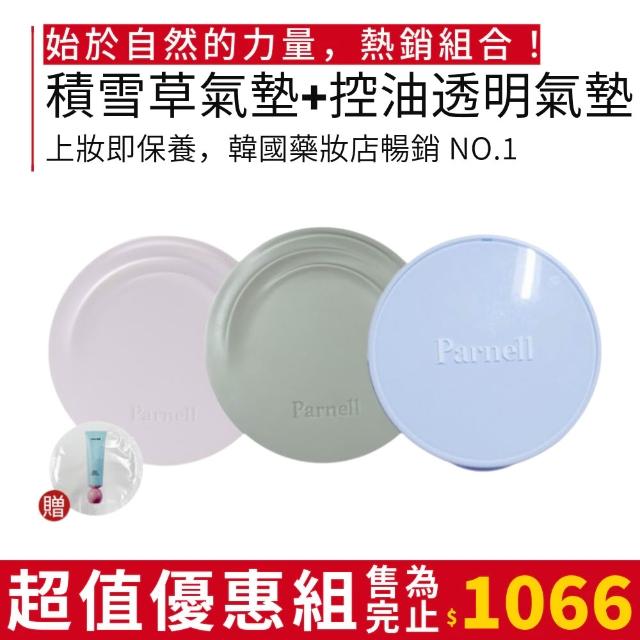 Parnell組合 1 + 1 積雪草精粹氣墊( 亮 / 霧 ) + 美肌控油透明氣墊