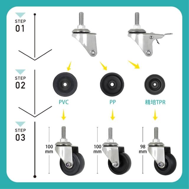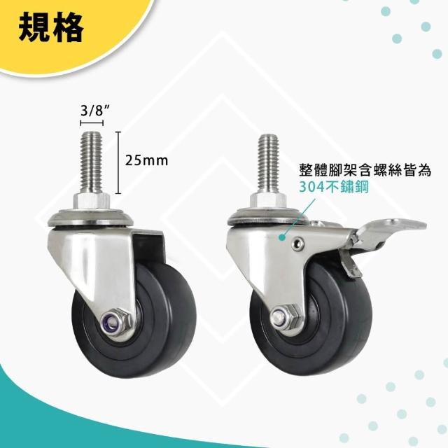 AXL Global2英吋不鏽鋼輪子, 3分螺牙白鐵腳輪 PP材質耐重耐磨/活動x2煞車x2/防水防鏽腳輪