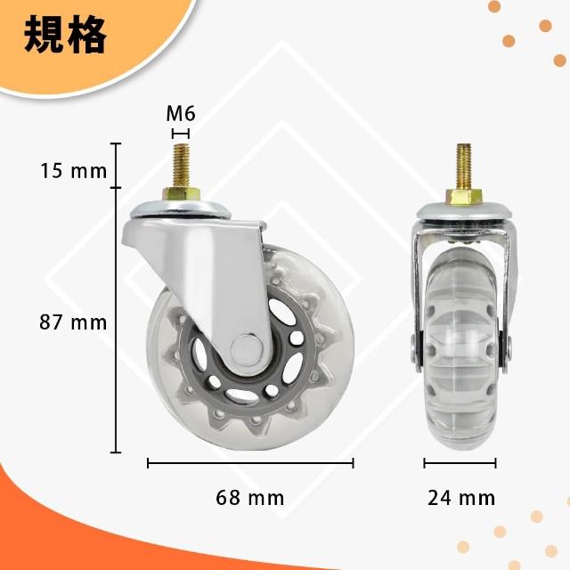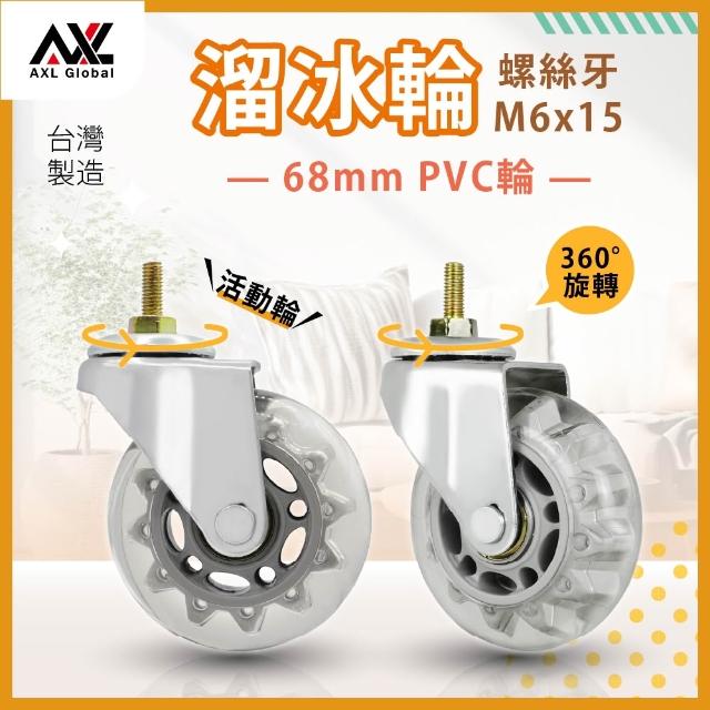 AXL GlobalM6萬向輪 68mm PVC靜音溜冰輪 螺絲牙m6輪子 不刮地板 滑順耐用 輕型收納推車/層架/衣架適用 (台灣製造)