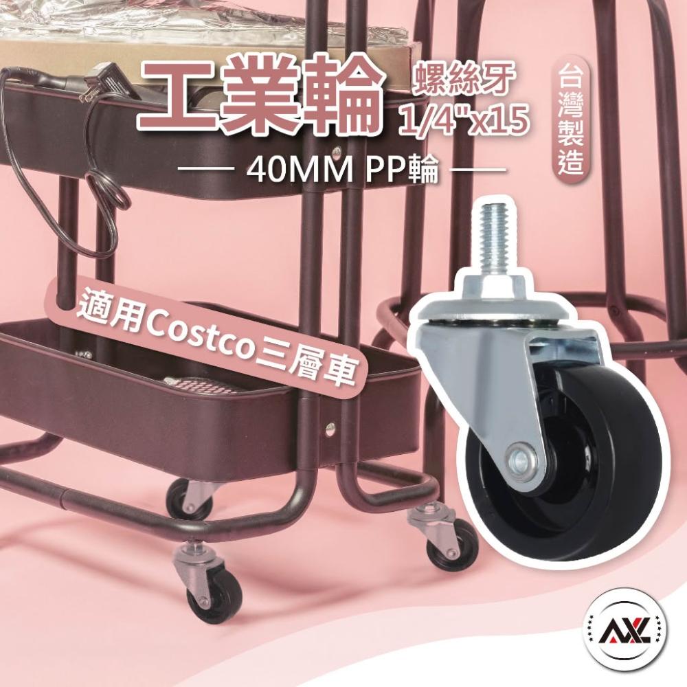 1/4英寸(2分牙)螺絲牙腳輪 PP輪 萬向輪 輕型層架輪/推車輪 螺紋式萬向輪 適用Costco收納推車 (台灣製造)