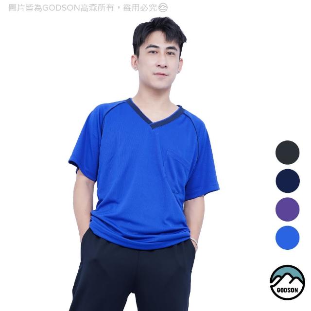 GODSON男MIT V領口袋 涼感衣 男排汗衫 運動上衣 大尺碼(V領 胸前口袋 排汗短袖 男款訓練運動上衣)