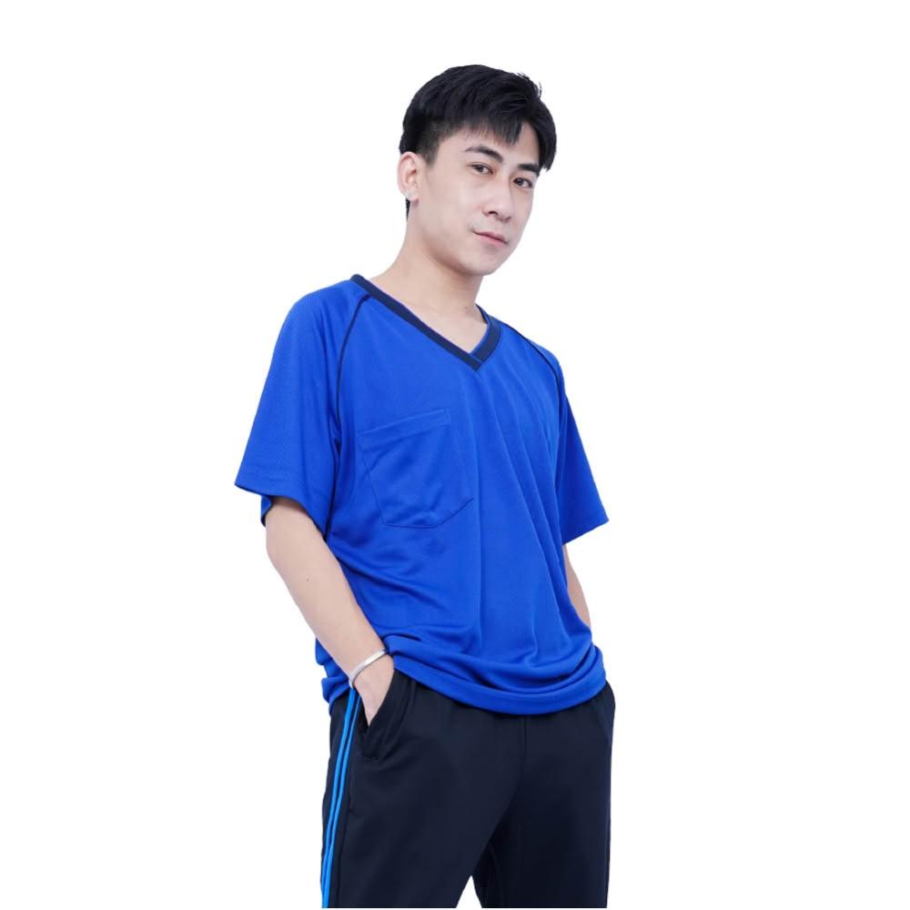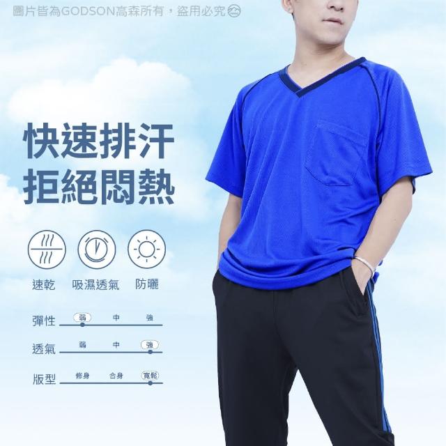 GODSON男MIT V領口袋 涼感衣 男排汗衫 運動上衣 大尺碼(V領 胸前口袋 排汗短袖 男款訓練運動上衣)