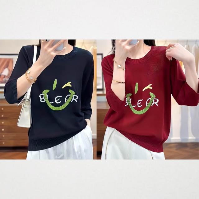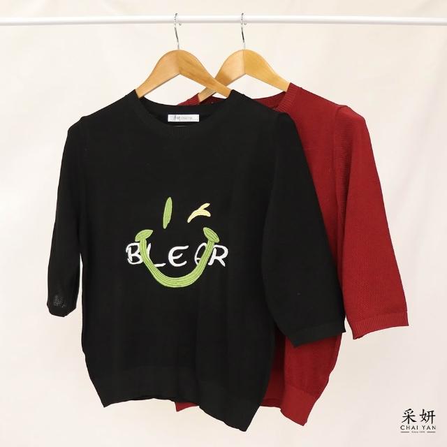 CHAI YAN 采妍笑臉字母刺繡針織圓領半袖上衣 秋冬新款-65-78公斤可穿