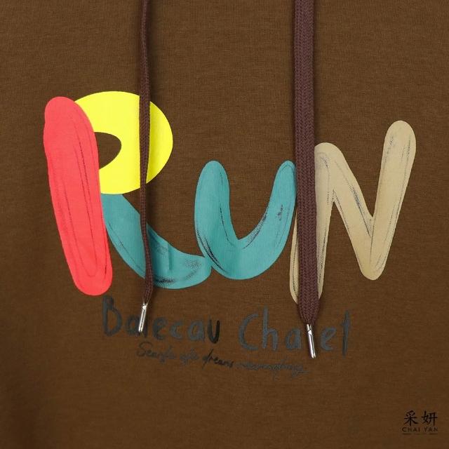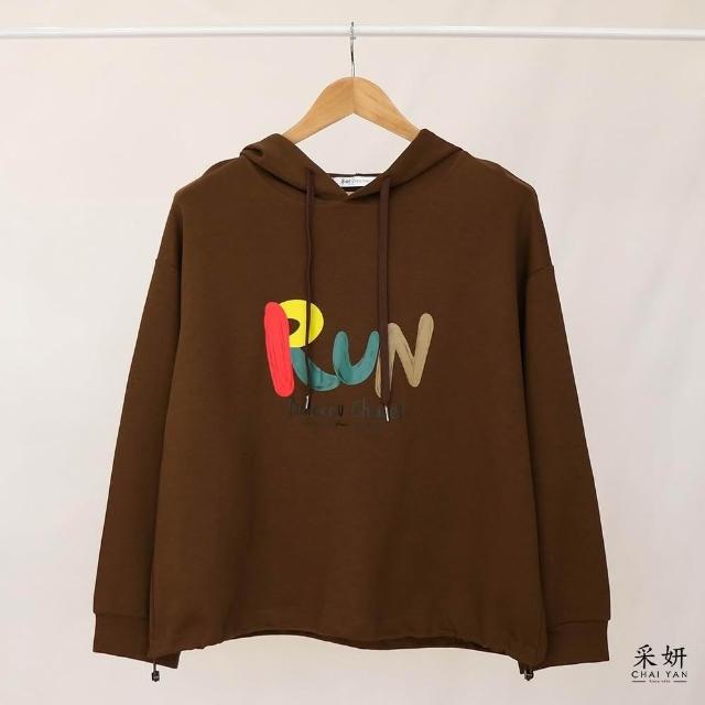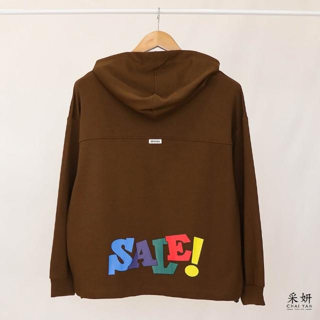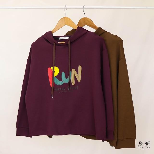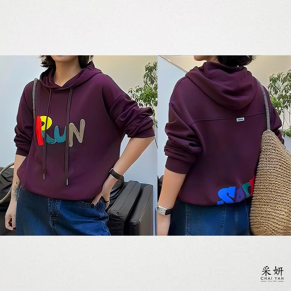 CHAI YAN 采妍落肩彩色字母印花抽繩連帽長袖上衣 秋冬新款-65-78公斤可穿