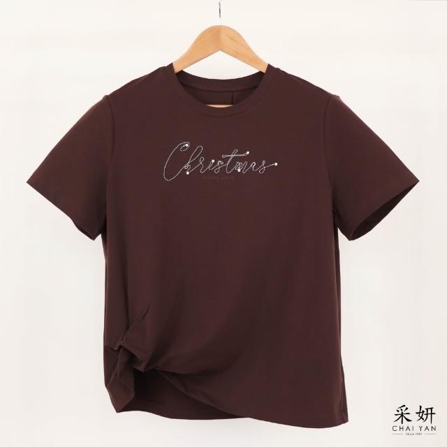 CHAI YAN 采妍珍珠線條字母滑棉短袖上衣 春夏新款-65-78公斤可穿