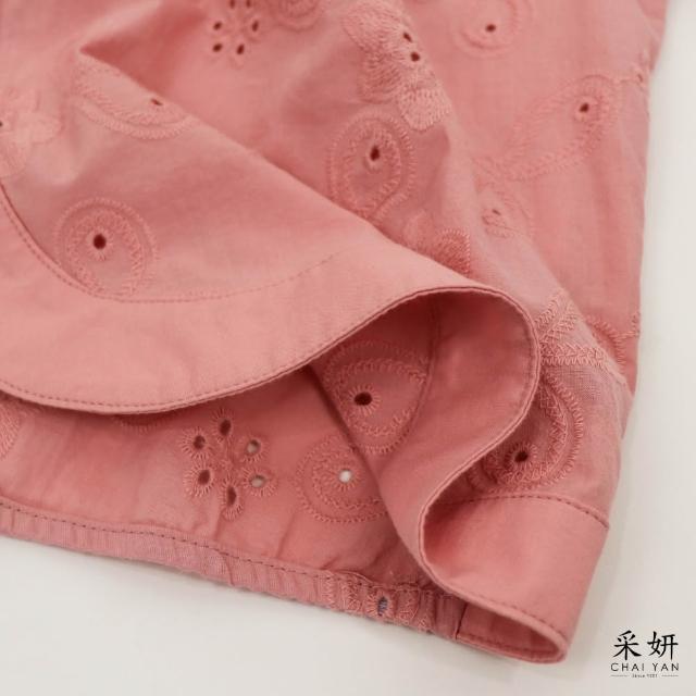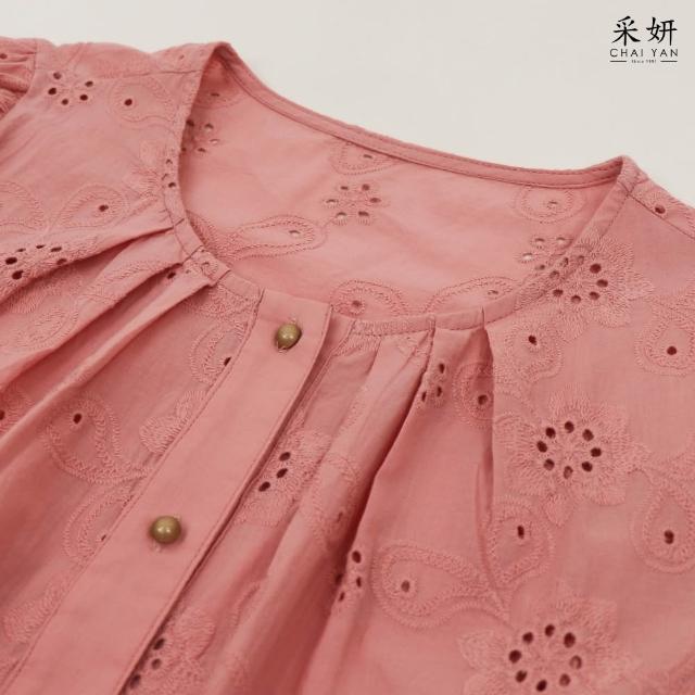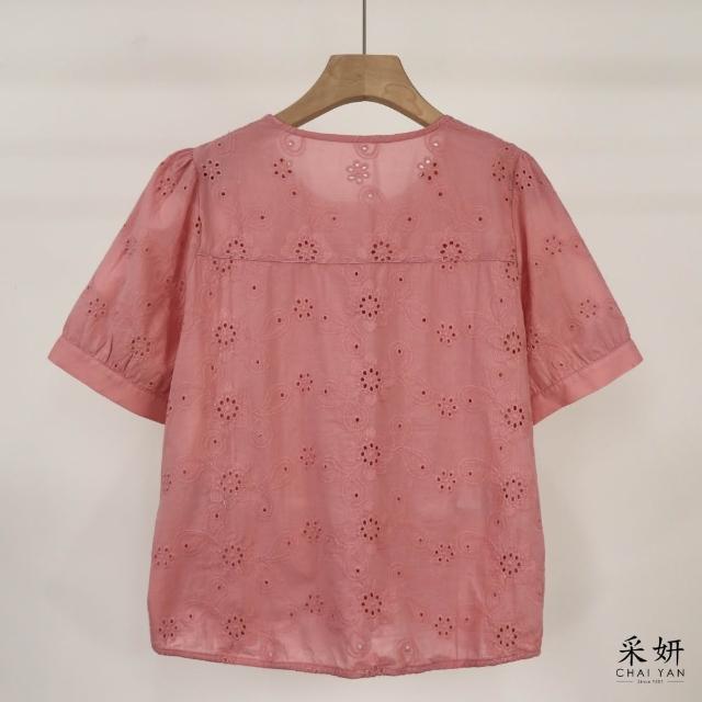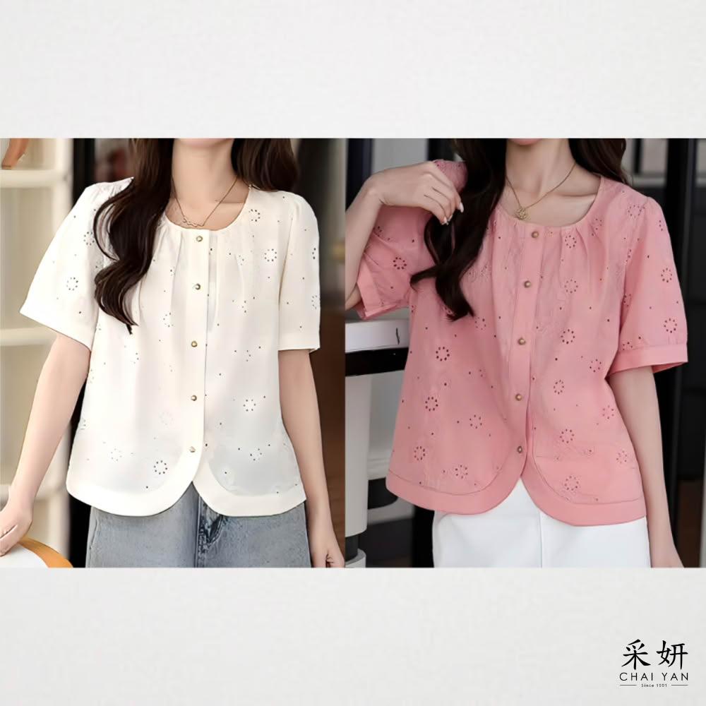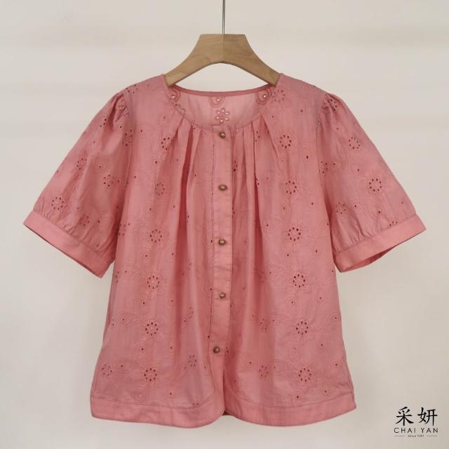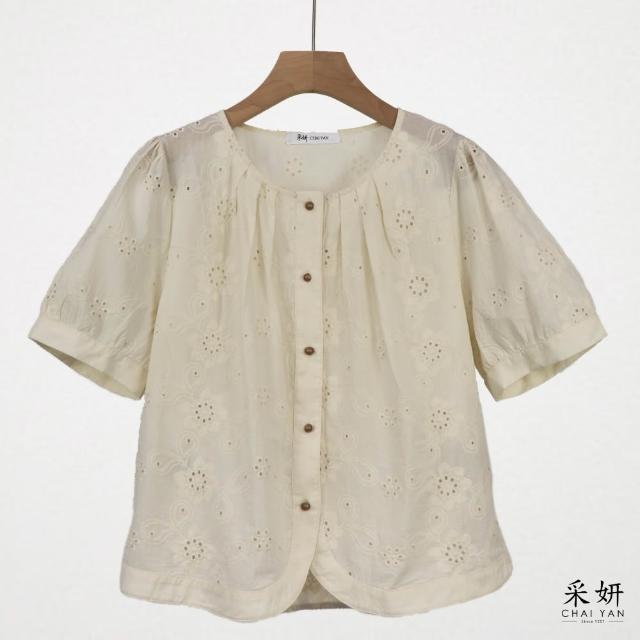 CHAI YAN 采妍圓釦花朵亞麻短袖襯衫 春夏新款-65-78公斤可穿