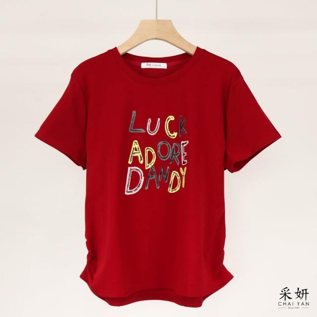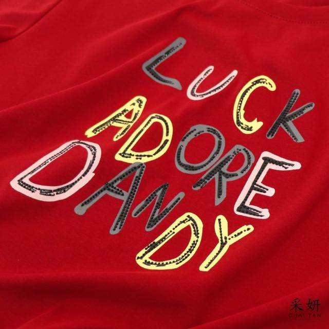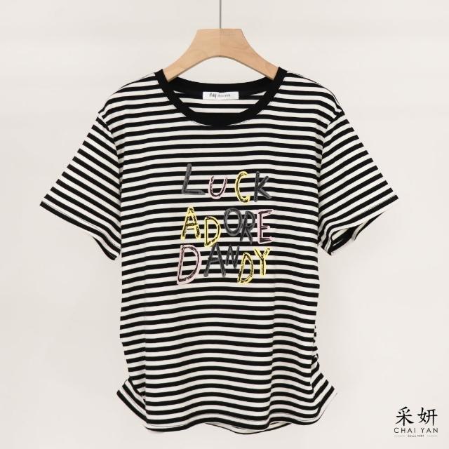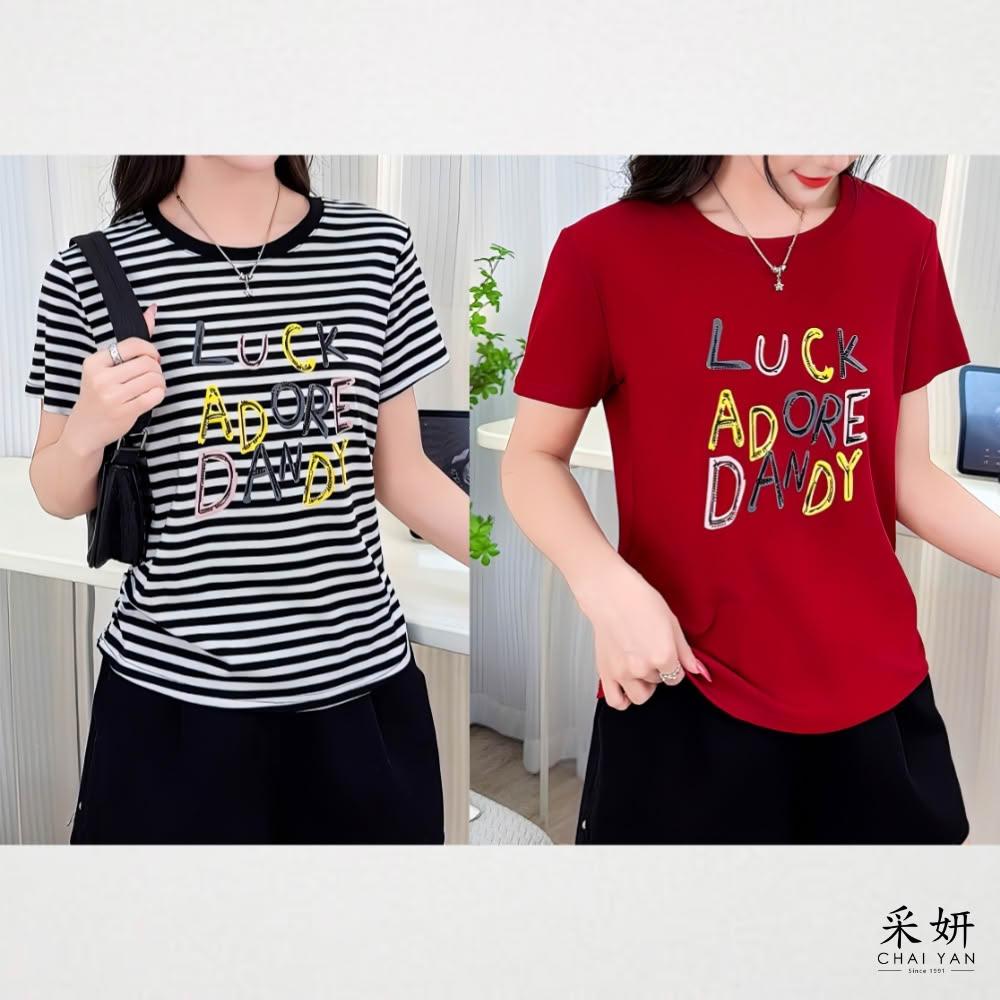 CHAI YAN 采妍水鑽趣味字母短袖上衣 春夏新款-65-78公斤可穿
