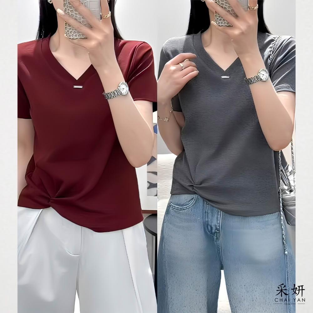 CHAI YAN 采妍單結高彈短袖上衣 春夏新款-65-78公斤可穿