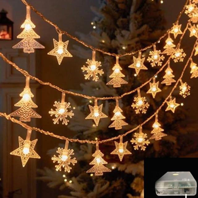 雪花+聖誕樹+星星 燈串 1000cm 佈置燈串聖誕裝飾燈飾(聖誕燈 氣氛燈 串燈 聖誕節 聖誕佈置)
