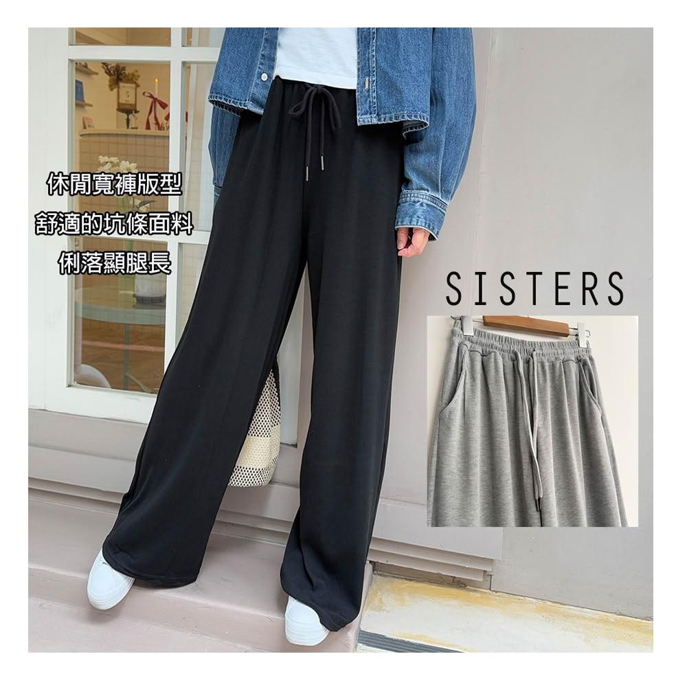 SISTERS顯瘦長腿穿搭的坑條寬褲 休閒長褲(女下著/長褲/寬褲/褲子/顯瘦/女褲)