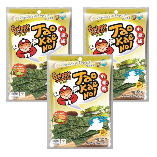 泰國小老板3包/組 泰國 小老闆 厚片海苔片 原味 山葵 辣味 32g(悠西將)