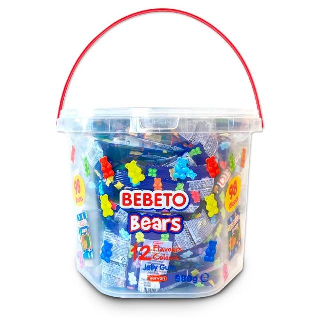 Bebeto 泰迪熊提桶裝-土耳其 Bebeto 彩虹熊軟糖 980g(悠西將)