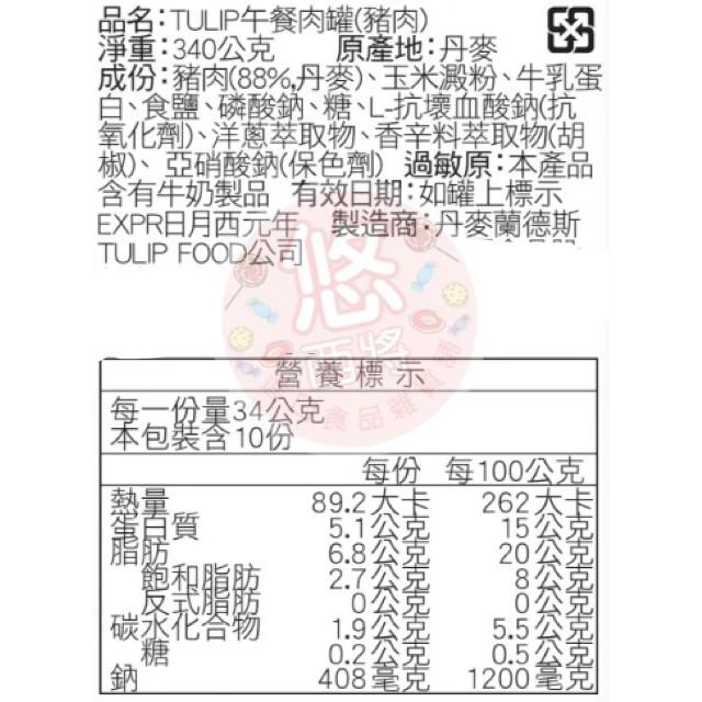 Tulip丹麥 Tulip 經典午餐肉罐頭 午餐肉 減鹽40%(悠西將)