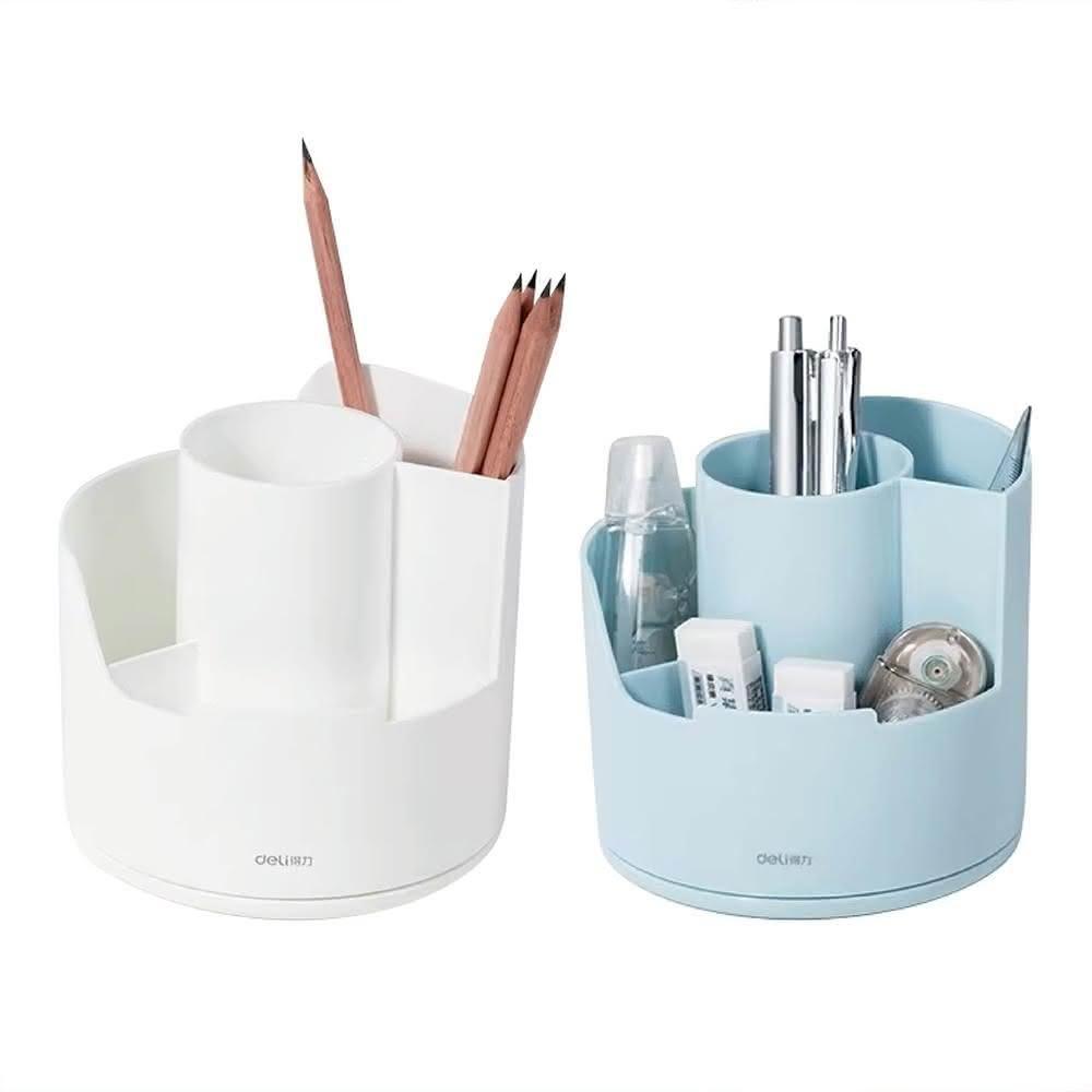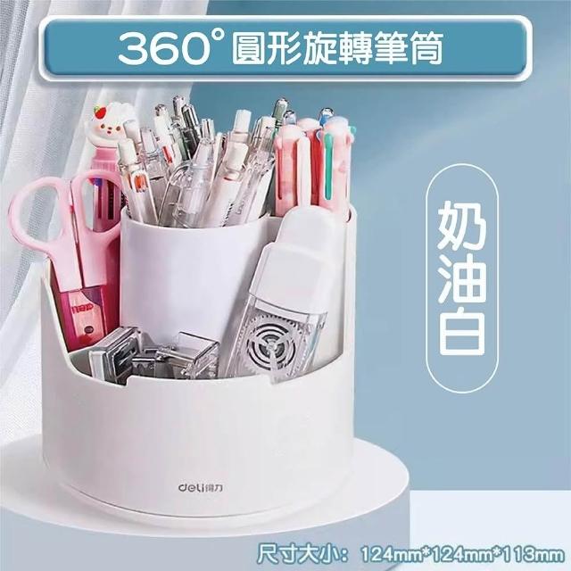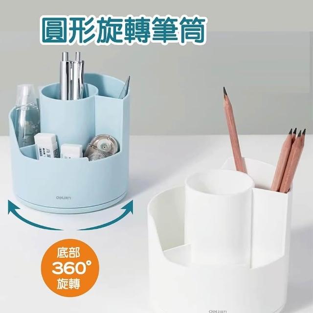 得力 圓形旋轉筆筒 360度旋轉筆筒 旋轉筆筒收納盒 筆筒 文具收納神器 大容量變身 收納文具 三格 可愛ins