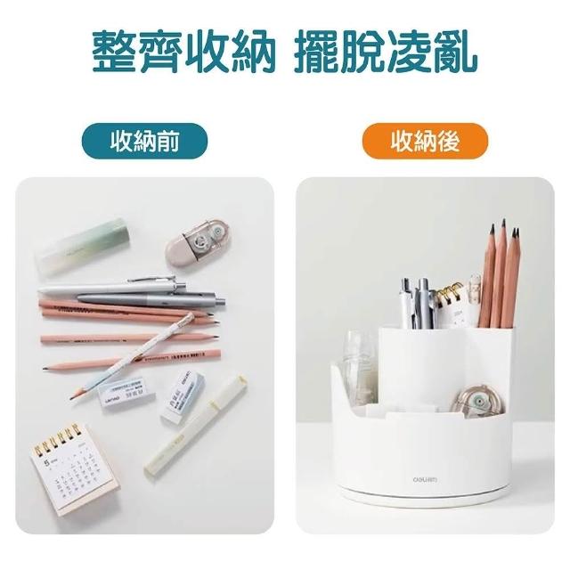 得力 圓形旋轉筆筒 360度旋轉筆筒 旋轉筆筒收納盒 筆筒 文具收納神器 大容量變身 收納文具 三格 可愛ins