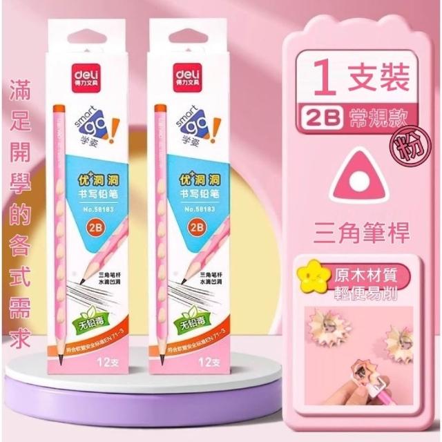 Deli 得力洞洞鉛筆 加粗大三角鉛筆 HB 2B 鉛筆 練字文具 加粗鉛筆 粗款洞洞鉛筆 幼兒園 小學生 大三角 得力
