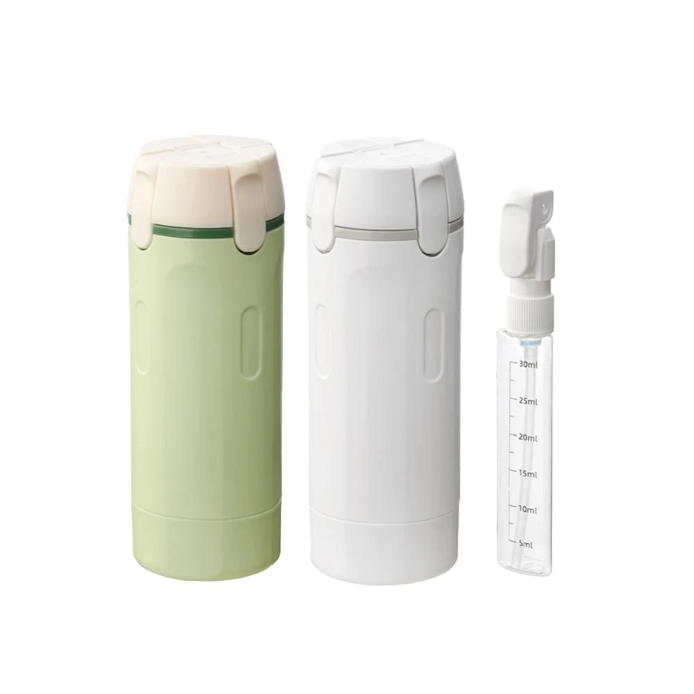 旅行四合一分裝瓶 摺叠按壓頭 洗髮精 沐浴露 化妝品套裝 按壓分裝瓶 旅行分裝瓶 乳液分裝瓶 防漏 防按壓 30ML