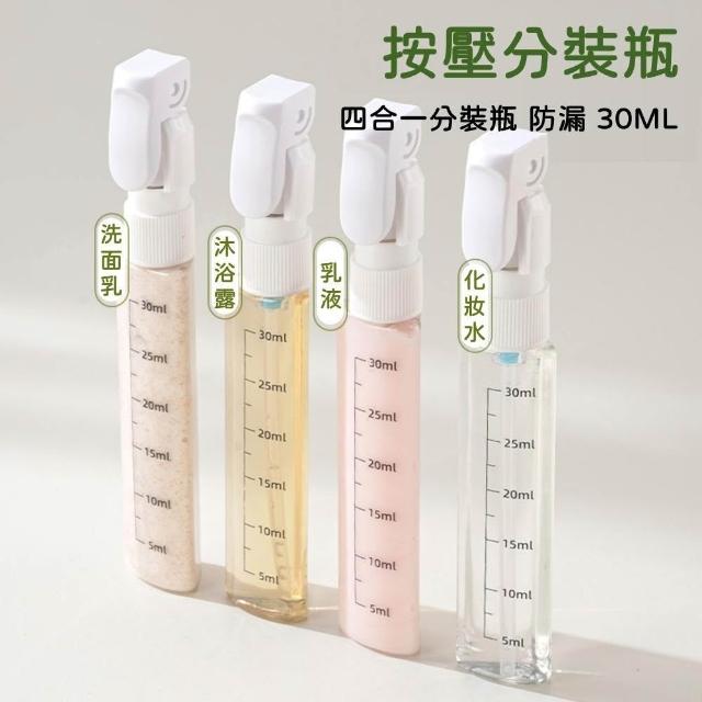 旅行四合一分裝瓶 摺叠按壓頭 洗髮精 沐浴露 化妝品套裝 按壓分裝瓶 旅行分裝瓶 乳液分裝瓶 防漏 防按壓 30ML