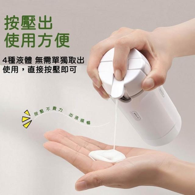 旅行四合一分裝瓶 摺叠按壓頭 洗髮精 沐浴露 化妝品套裝 按壓分裝瓶 旅行分裝瓶 乳液分裝瓶 防漏 防按壓 30ML