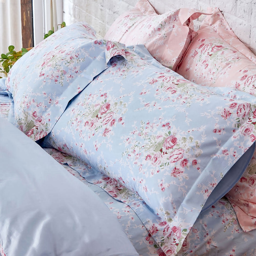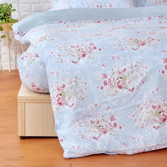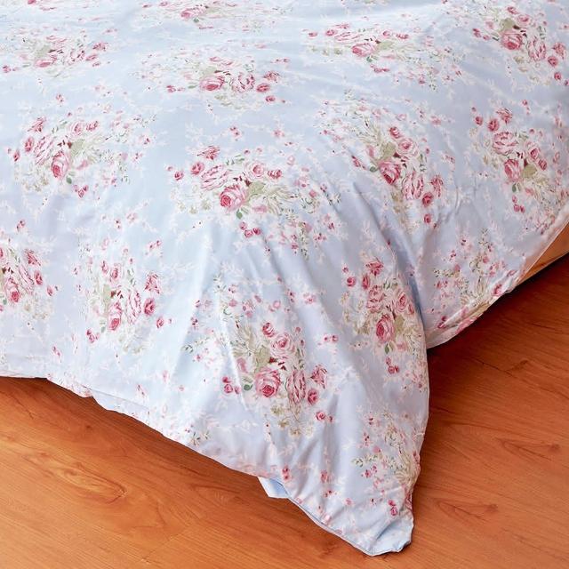 埃及棉 床包枕套三件組 田園玫瑰藍 雙人埃及棉、床包、枕套