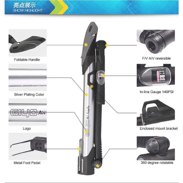 GIYOGM-71 打氣筒(美嘴 法嘴通用 140PSI)