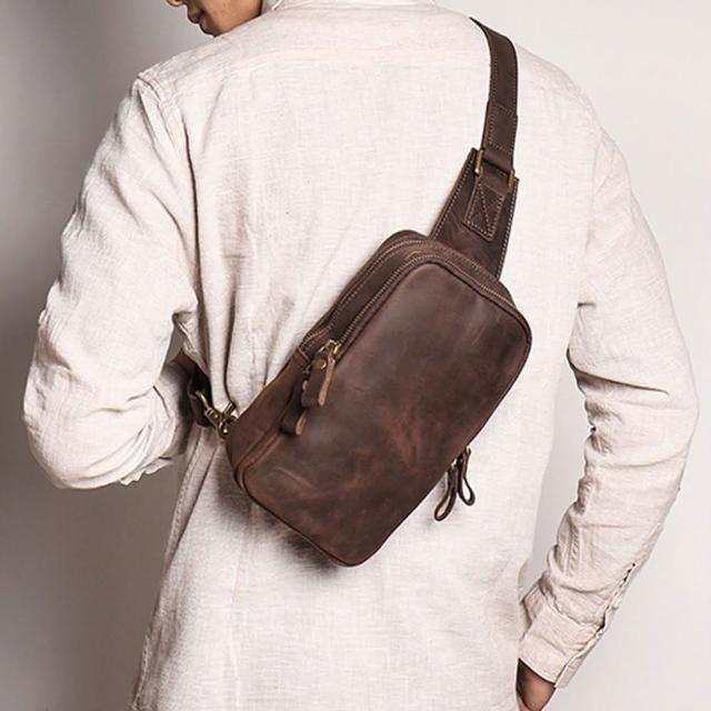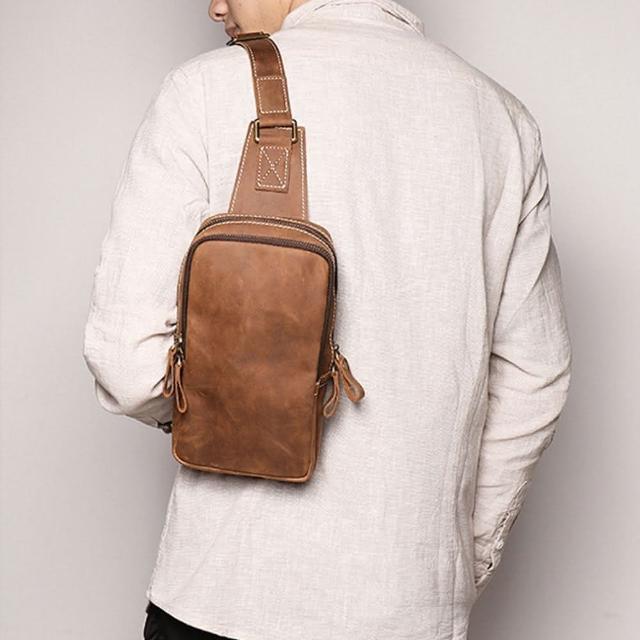LEEHER牛皮後背包男/牛皮胸包/真皮胸包/真皮包包/男生生日禮物/男生包包/胸包/瘋馬皮/男胸包/斜胸包