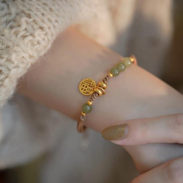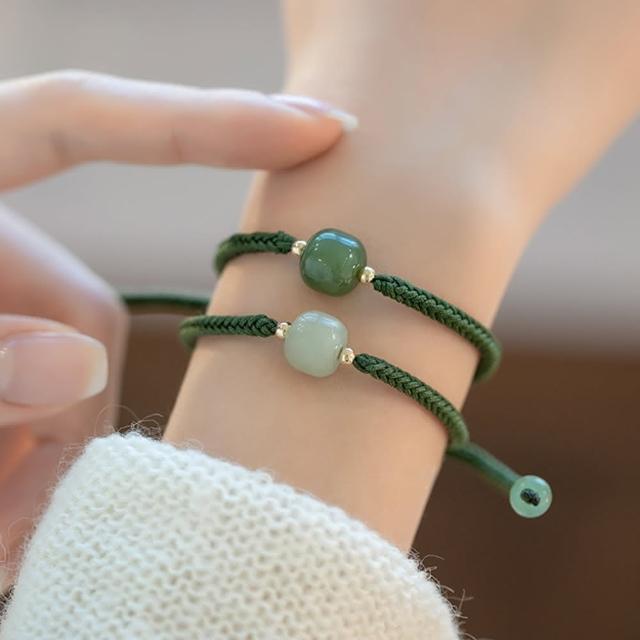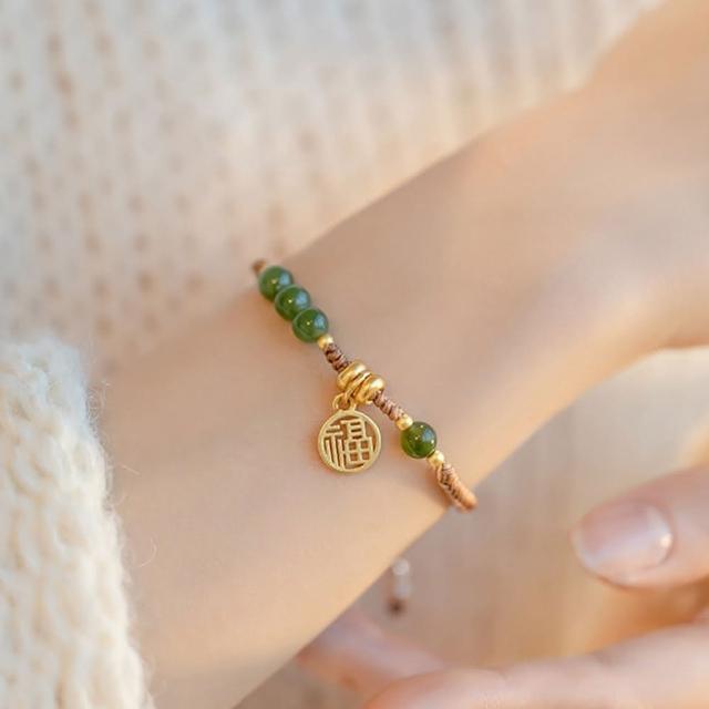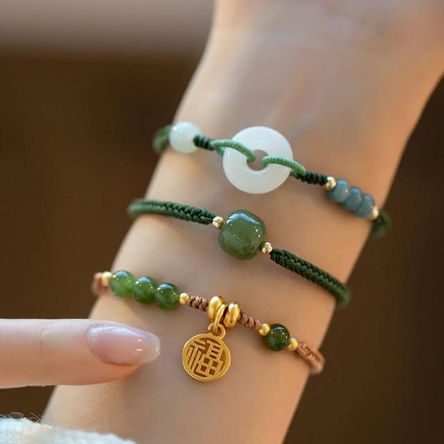 LEEHER手鍊/手串/編織手鍊/兒童手鍊/編織手環/和田石手鏈/福字吊墜/平安手鍊/綠色手鍊/伸縮手鍊