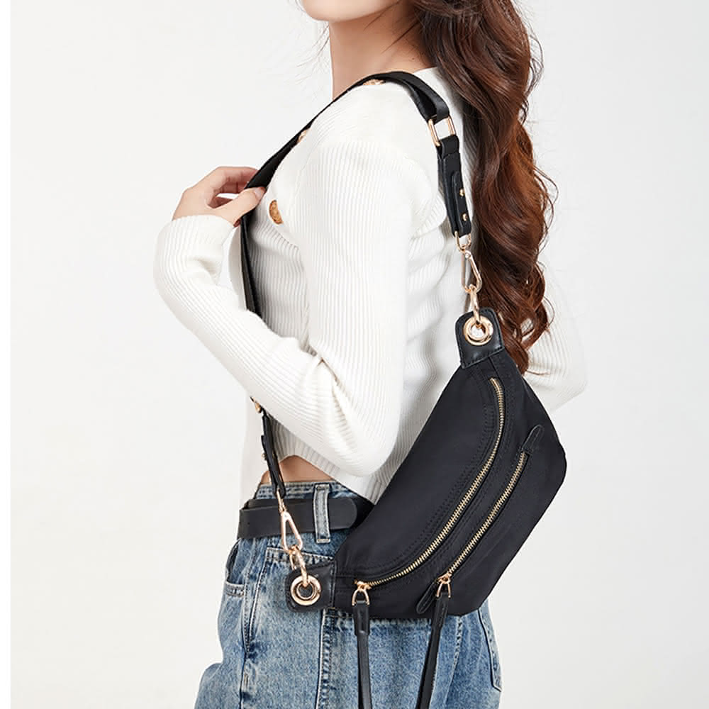 LEEHER胸包/尼龍斜背包/休閒百搭包/女生腰包/尼龍胸包/黑色小包/運動腰包/包包/斜背包
