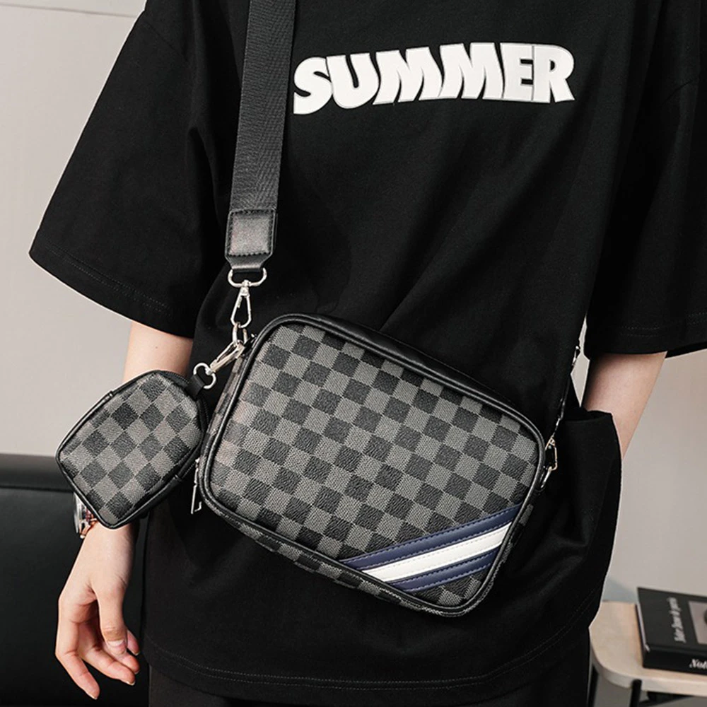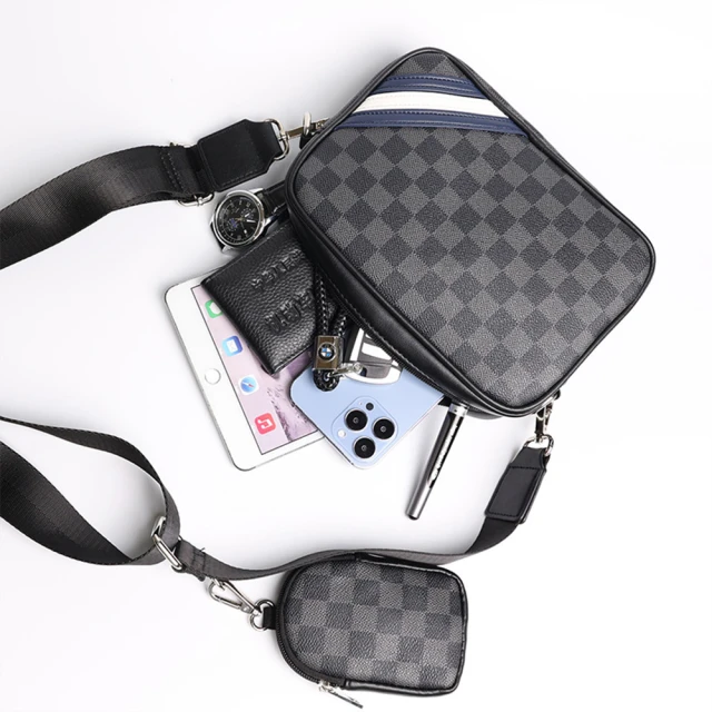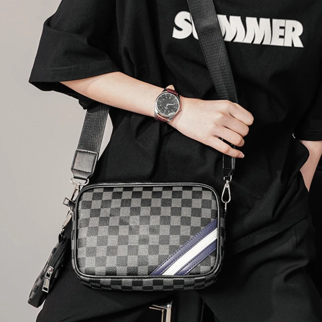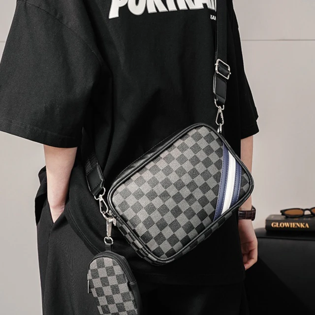 LEEHER斜背包/男生郵差包/名牌包包/韓國男生包包/潮牌包包/格紋包包/子母包/包包男/好看包包