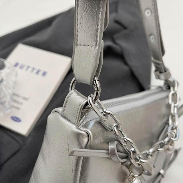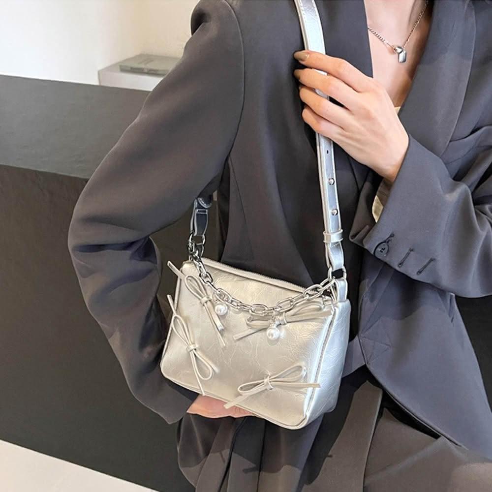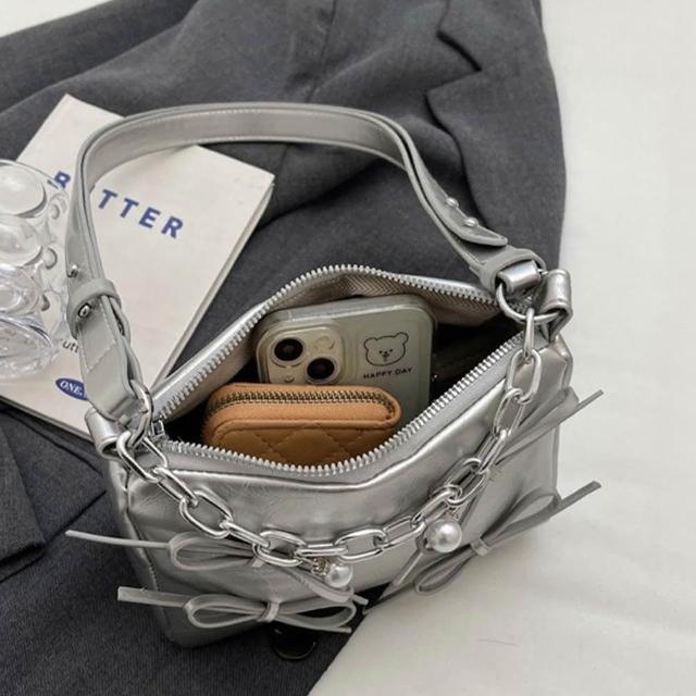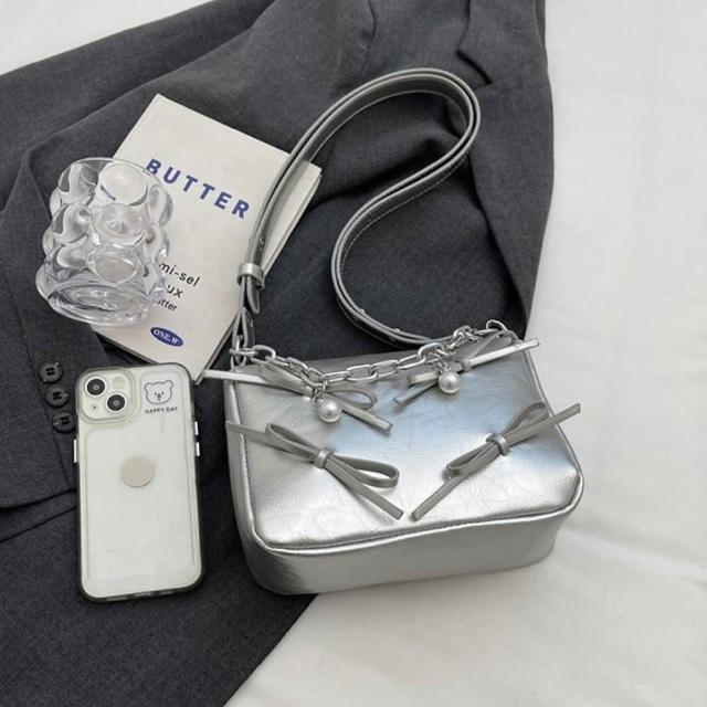 LEEHER銀色包包/斜背托特包/蝴蝶結包包/小方包/肩背包/托特包/韓國包包/女生禮物/包包/斜背包