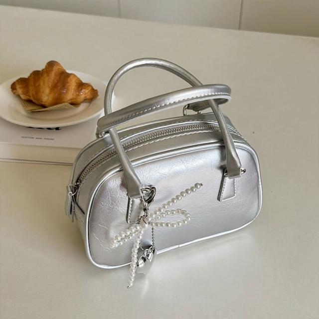 LEEHER銀色包包/保齡球包/手提包/閨蜜包包/手提小方包/斜背包/女生禮物/斜背包/小包包/可愛包包