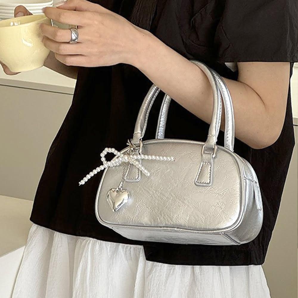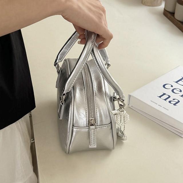 LEEHER銀色包包/保齡球包/手提包/閨蜜包包/手提小方包/斜背包/女生禮物/斜背包/小包包/可愛包包