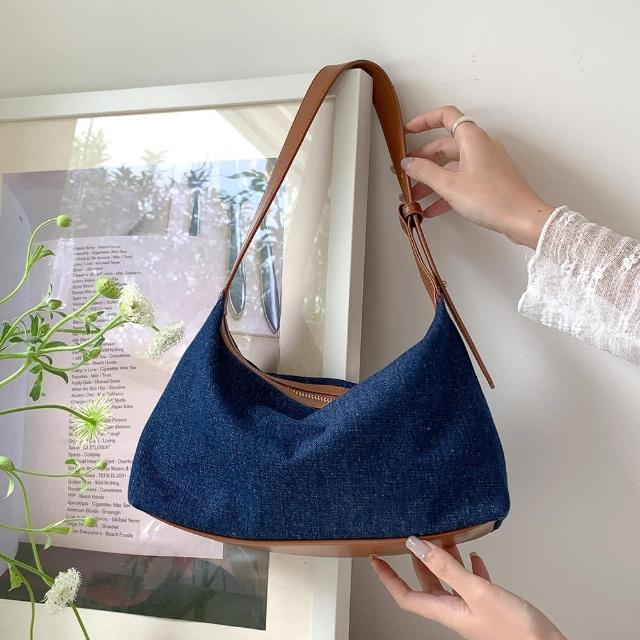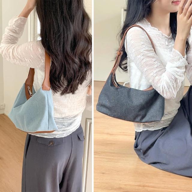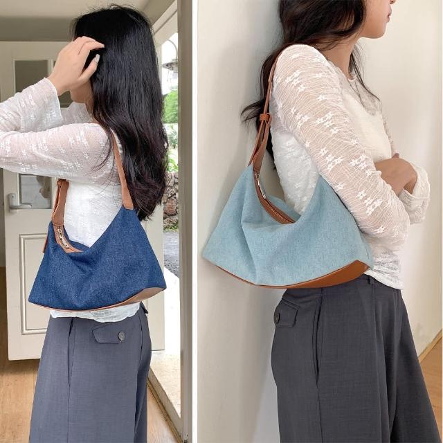 LEEHER女生/包包/腋下包/單肩包/牛仔包包/拼接包包/手拎包/小眾包包/個性包包/牛仔腋下包/法棍包/水餃包/散步包/小禮物