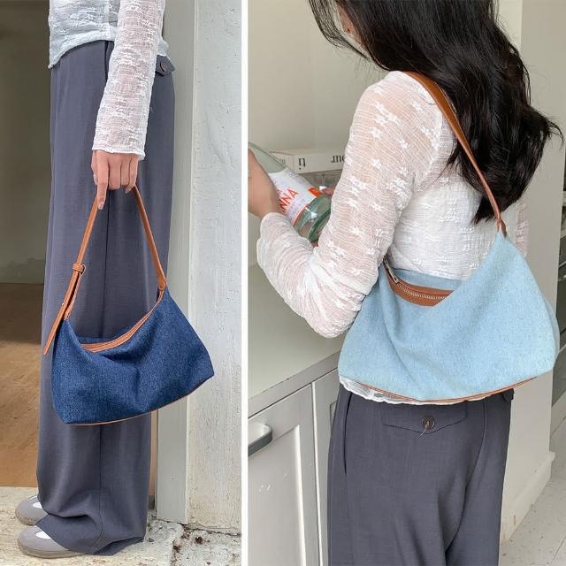 LEEHER女生/包包/腋下包/單肩包/牛仔包包/拼接包包/手拎包/小眾包包/個性包包/牛仔腋下包/法棍包/水餃包/散步包/小禮物
