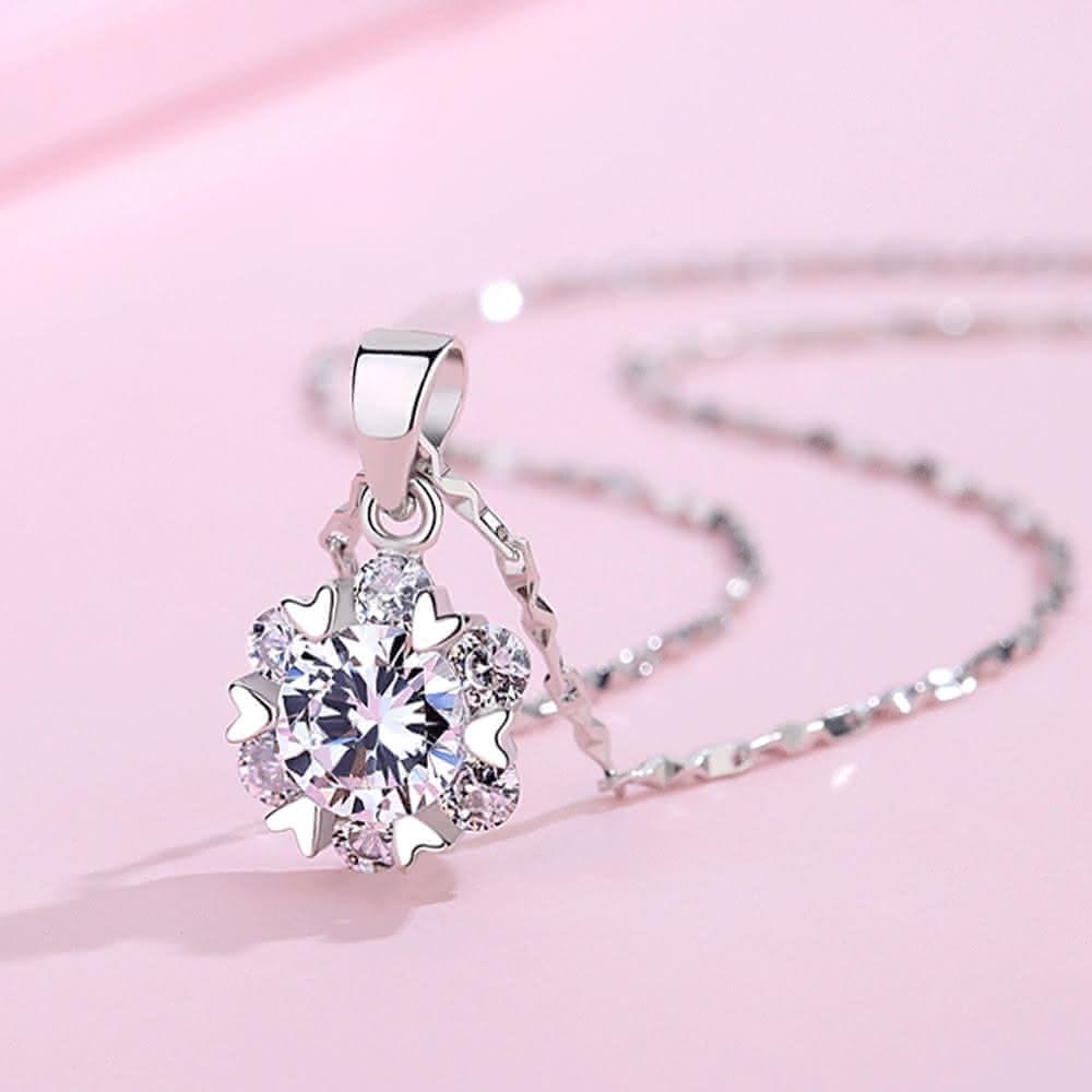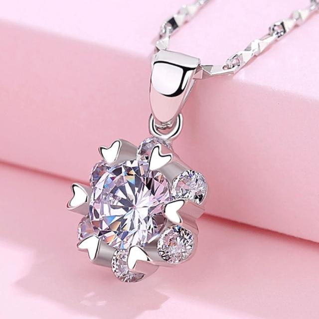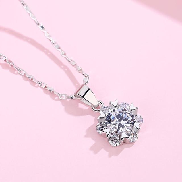 LEEHER雪花項鍊/鎖骨鍊/氣質項鍊/純銀項鍊/吊墜銀飾/莫桑石項鍊/婚宴禮物/百搭配件/情人節禮物