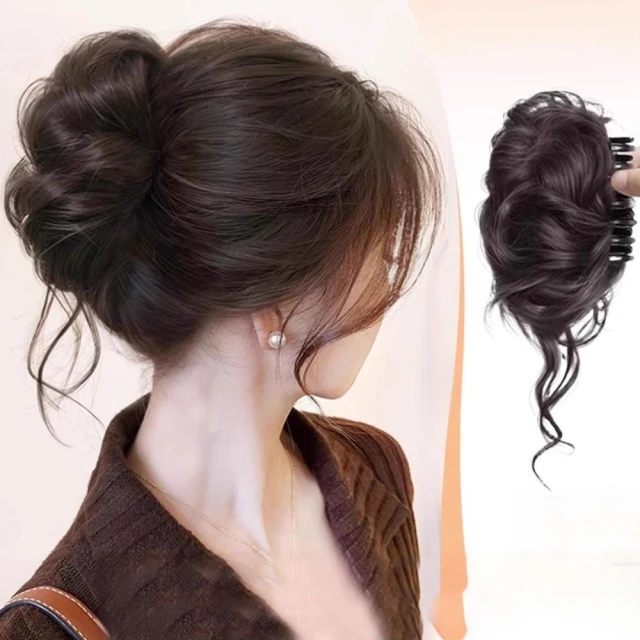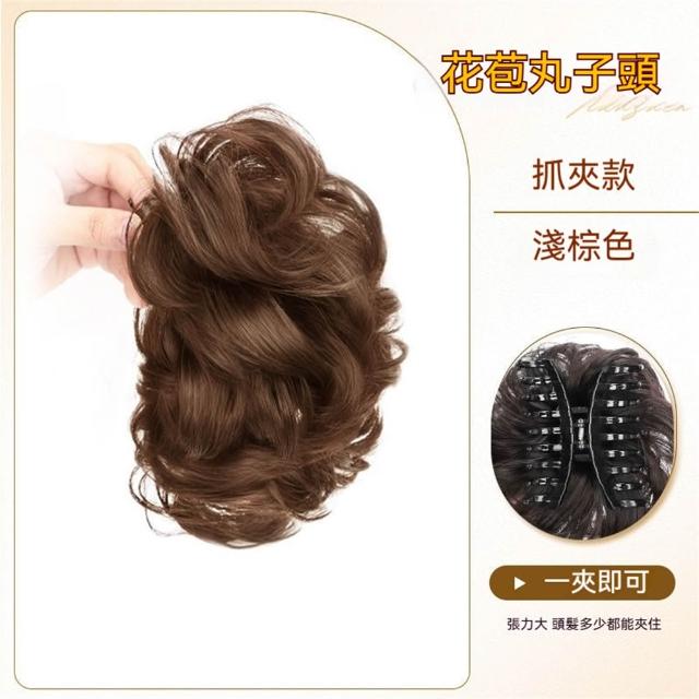LEEHER真髮髮片/蓬鬆髮飾/丸子頭假髮/抓夾/髮束/隱形/氣質/捲髮/頭飾/增加髮量/假髮圈/減齡神器/丸子頭盤髮器