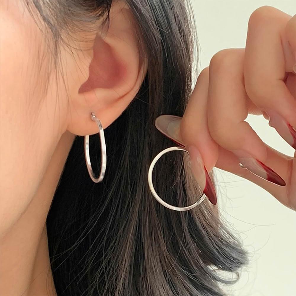 LEEHER大圈耳環/純銀耳環/耳環/女生耳環/生日禮物/耳環女/飾品/耳圈/大圓圈耳環/大耳環/耳夾/耳墜/耳飾/銀色耳環