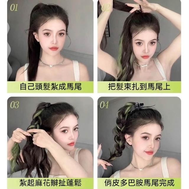 LEEHER自繞假髮/挑染馬尾/多巴胺/麻花辮/增髮量/髮飾/假髮/長馬尾/彩色髮束/髮圈/懶人編髮神器/假髮馬尾
