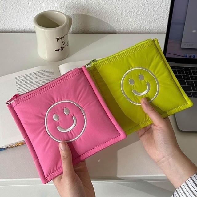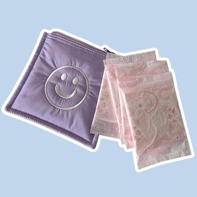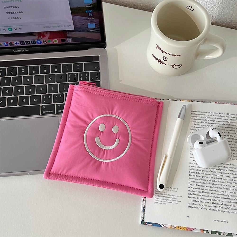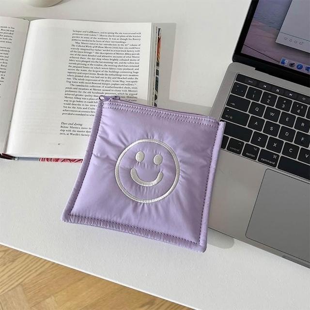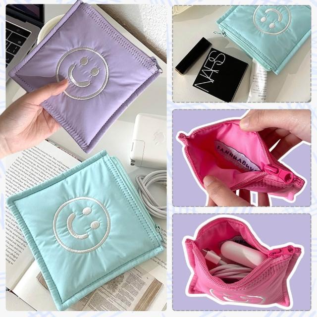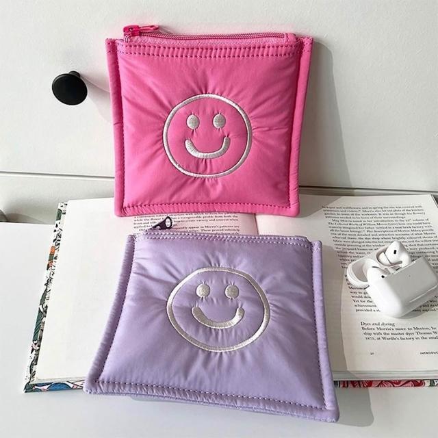 LEEHER女生/包包/零錢包/零錢袋/手拿包/收納包/衛生棉收納包/收納袋/補妝包/小包包/刺繡/笑臉/隨身小包