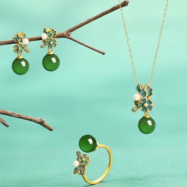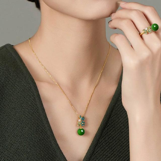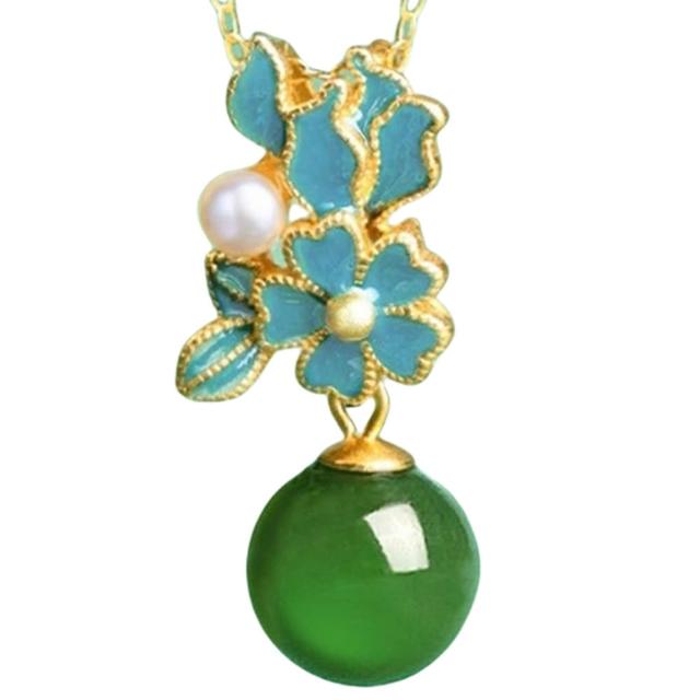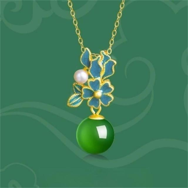 LEEHERS925/色綠石髓/新中式/項鍊/吊墜/花朵吊墜/古風//掛件/穿搭配件/項鍊/飾品/純銀項鍊/銀飾