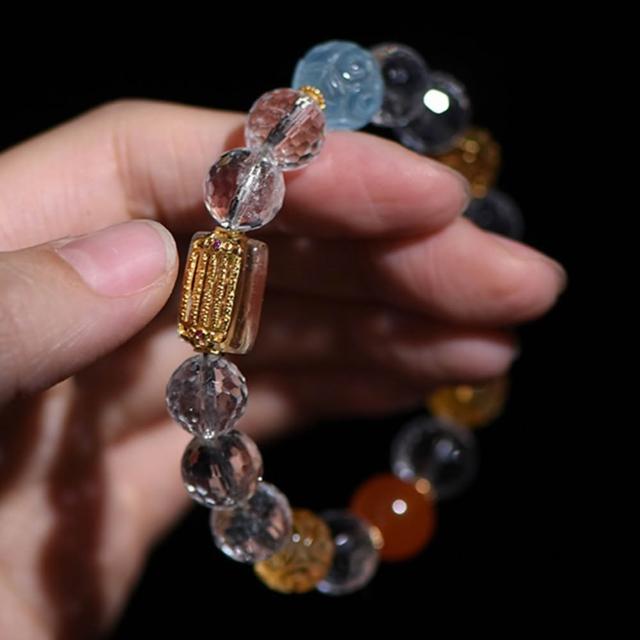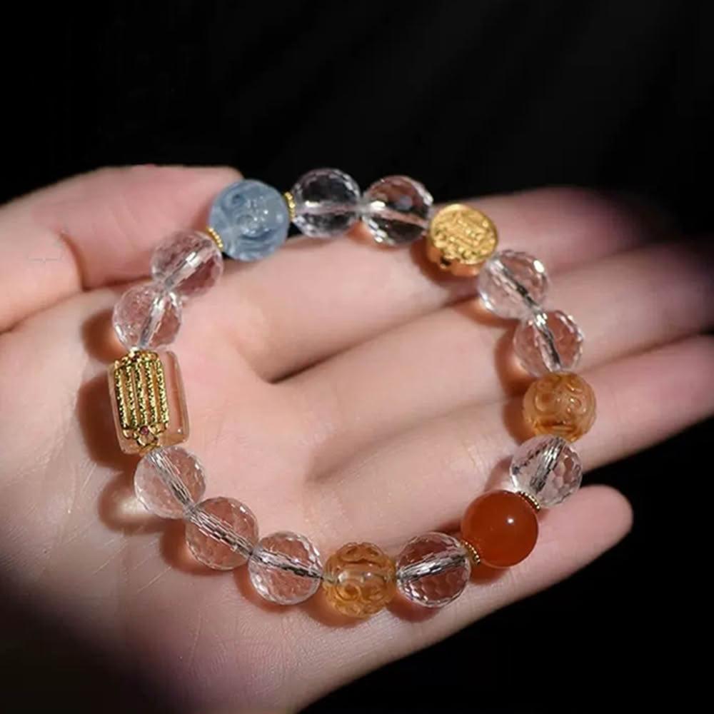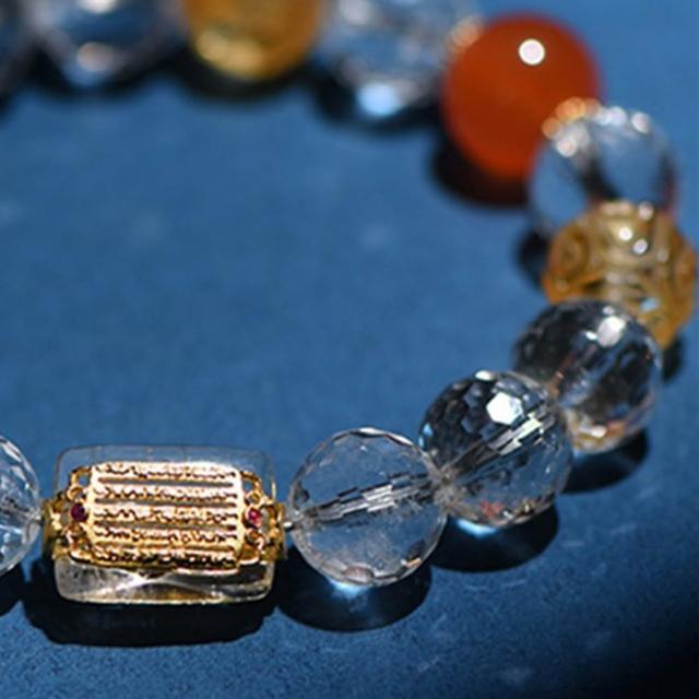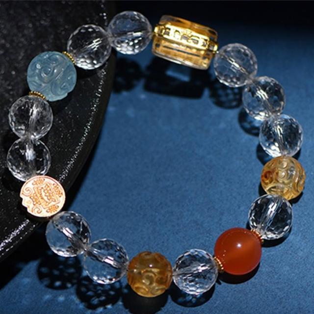 LEEHER黃水晶手鍊/天然水晶/串珠手鍊/白水晶手串/女生手鍊/四方納/招財手鍊/聚財/手鍊/五路爺手鍊/飾品/聚貴人