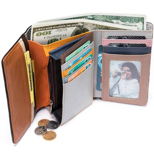 LEEHER三折短夾/拼接/手拿包/短款錢包/多卡位/小包/真皮錢包/皮包/長夾/中夾/短夾/錢包/零錢包/女生錢包/錢夾